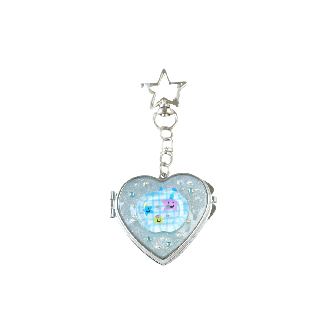 This adorable handmade resin heart keychain comes with a double-sided mini mirror hidden inside!